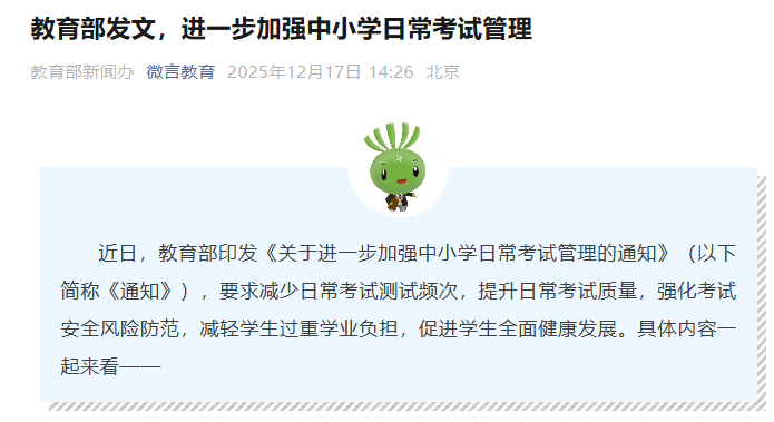 教育部发文,进一步加强中小学日常考试管理