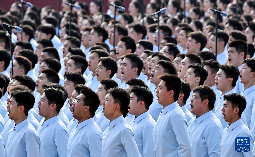 9月3日,纪念中国人民抗日战争暨世界反法西斯战争胜利80周年大会在北京天安门广场隆重举行。这是合唱团在演唱。新华社记者 李鑫 摄