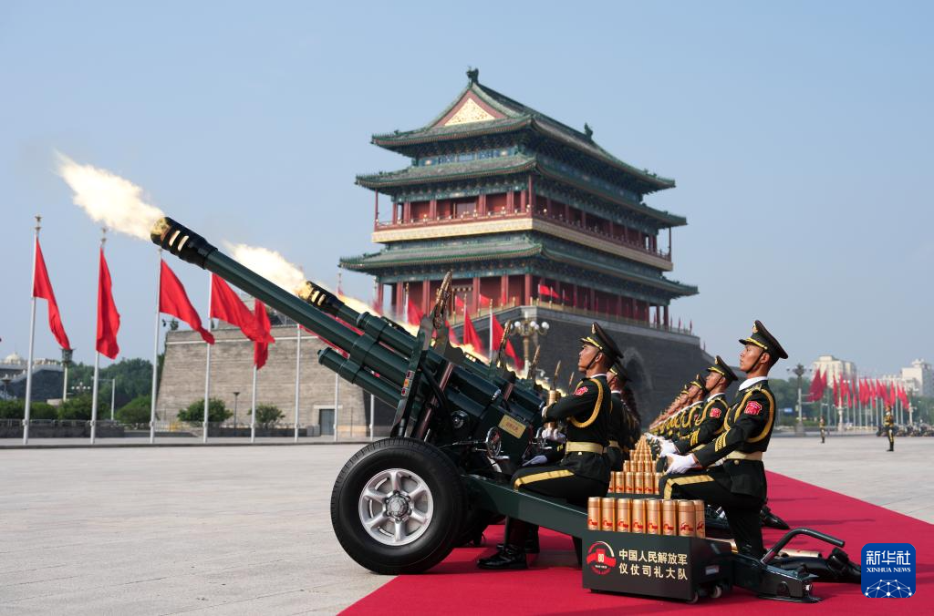 9月3日,纪念中国人民抗日战争暨世界反法西斯战争胜利80周年大会在北京隆重举行。这是礼炮在天安门广场鸣响。新华社记者 江文耀 摄