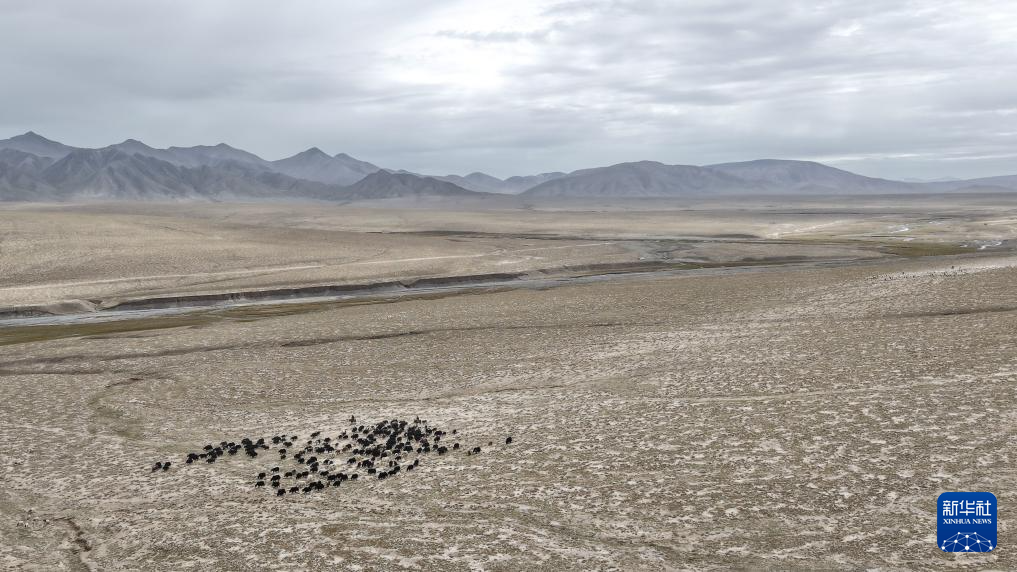 9月9日,在青海省海西蒙古族藏族自治州都兰县,牧民赶着牛羊从秋季草场出发,前往冬季草场(无人机照片)。新华社记者 齐芷玥 摄