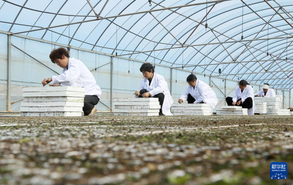 3月31日,农民在河南省洛阳市汝阳县刘店镇沙坪村育苗大棚育苗。新华社发(康红军摄)