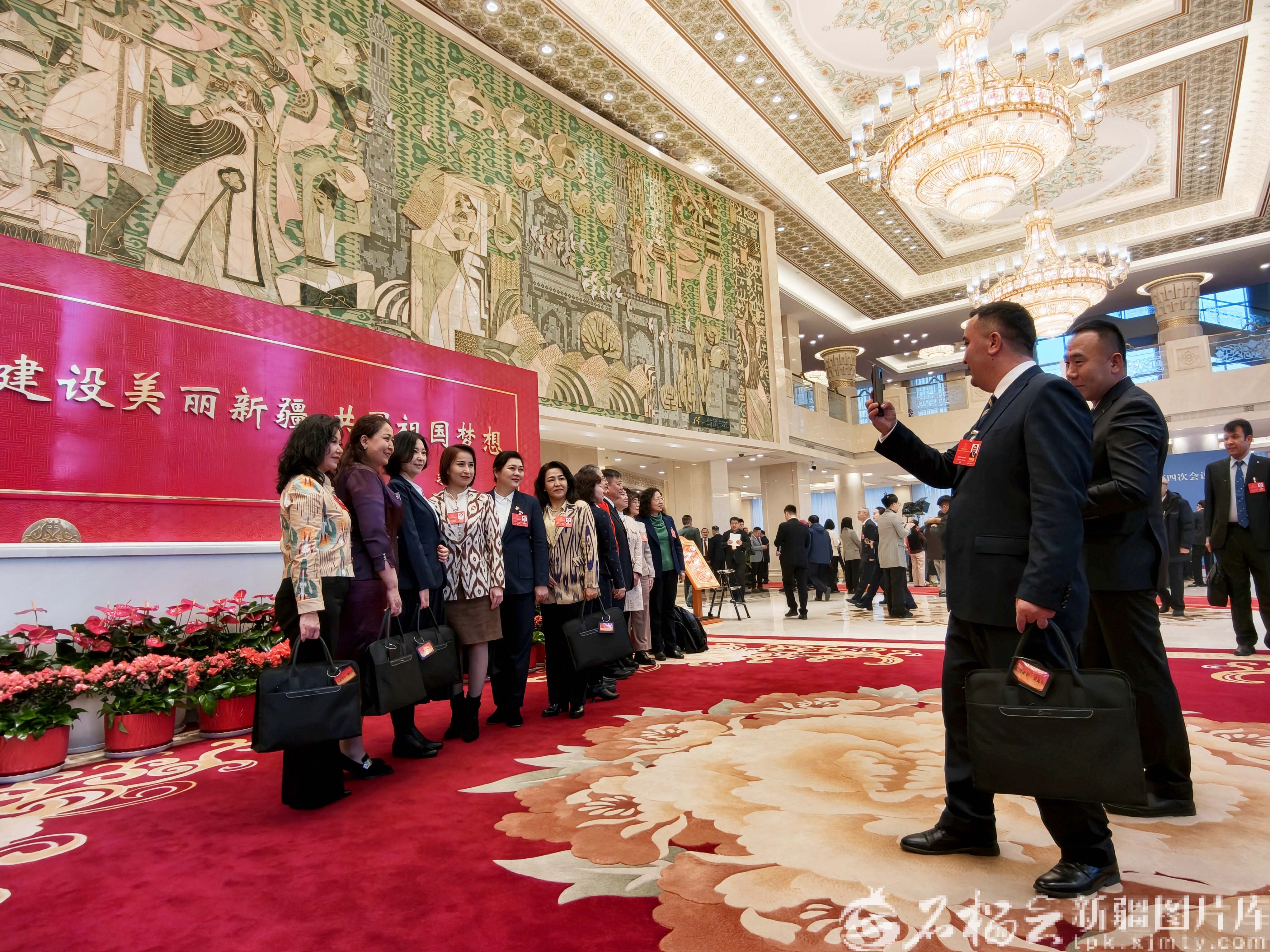 1月27日,自治区十四届人大四次会议在新疆人民会堂开幕。会议前,部分人大代表在会场合影。天山网-新疆日报记者 汤永摄