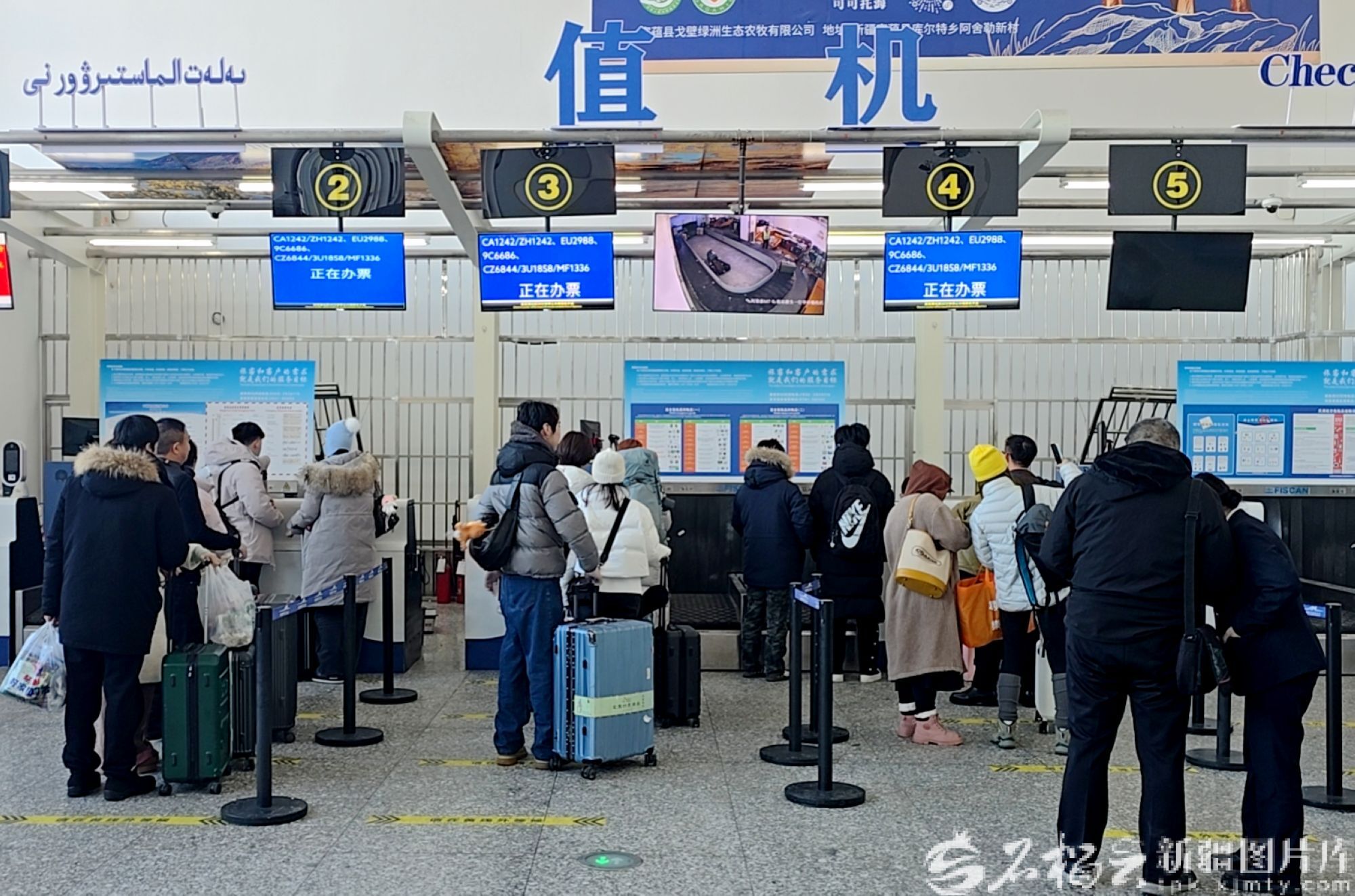 12月24日,旅客在阿勒泰雪都机场办理值机手续。曲孟伟 摄