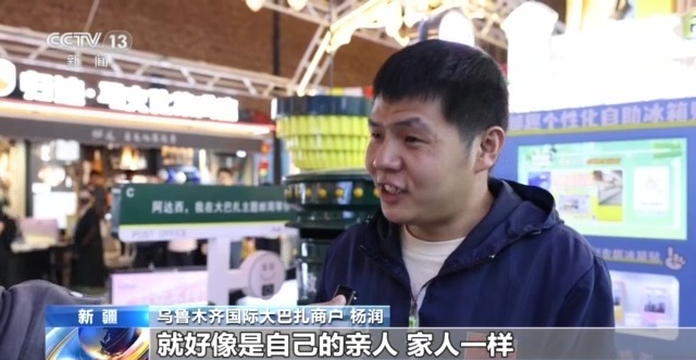 乌鲁木齐国际大巴扎商户 阎爱喜:现在你看自治区,你看每一年都有翻天覆地的变化,你看我们新疆发展,确实特别繁华。