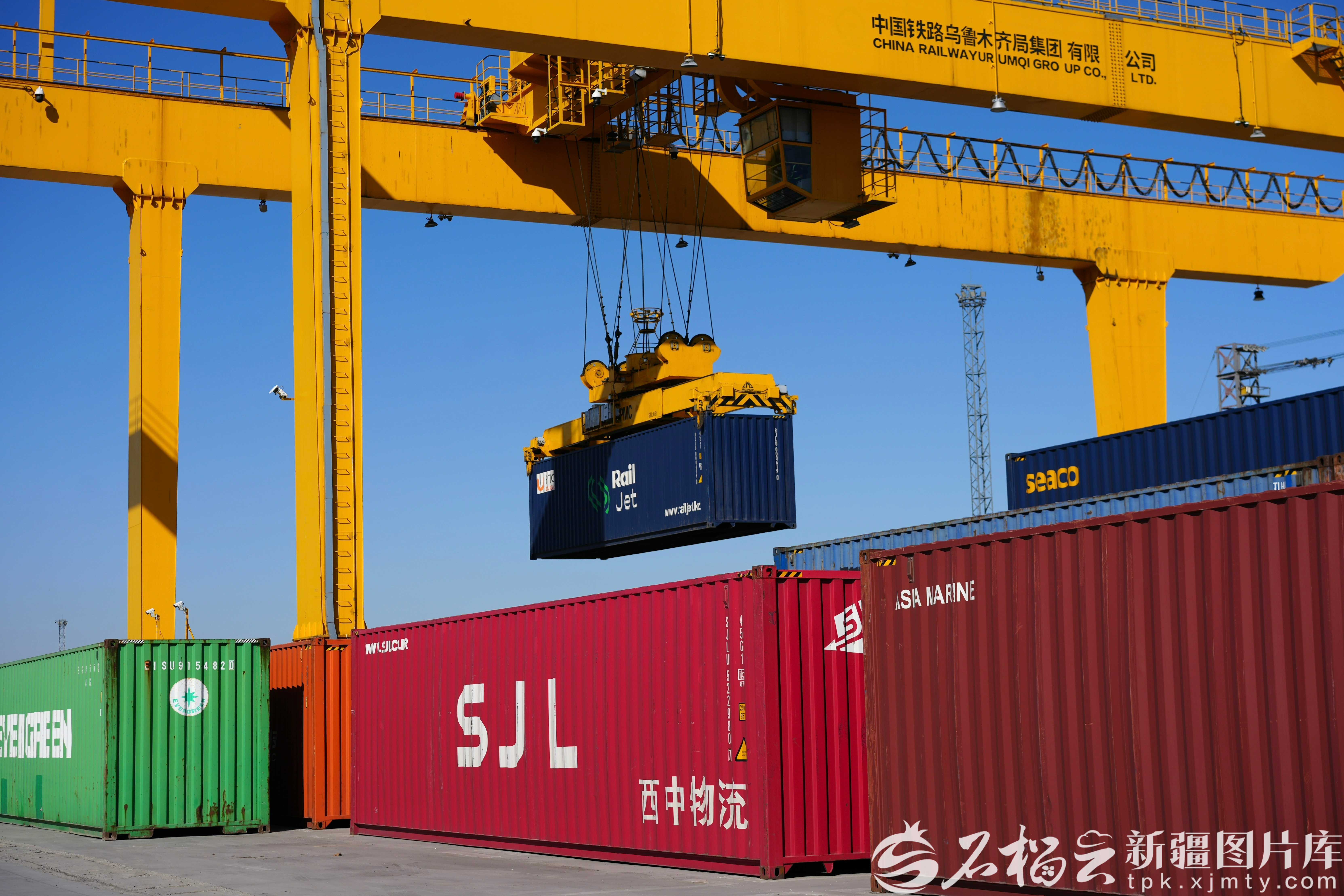 霍尔果斯站换装库龙门吊进行换装作业。巴合达尔摄